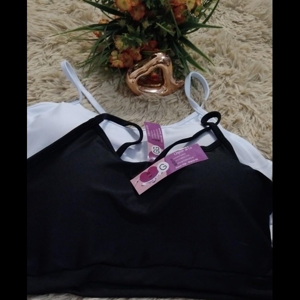 Top alça fina com bojo removível, confortável para o dia a dia.